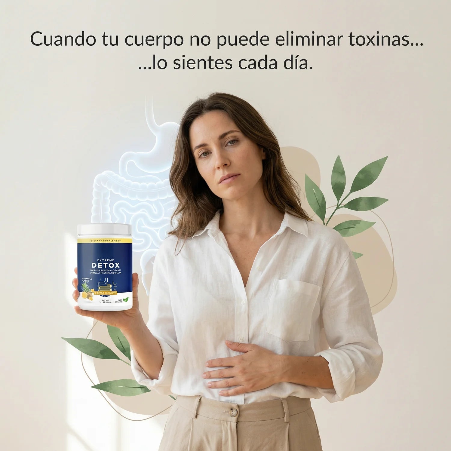 Extreme Detox Polvo es una fórmula herbal natural diseñada para apoyar la limpieza digestiva, promover la regularidad intestinal y aumentar tu energía. Contiene una mezcla potente de ingredientes herbales que trabajan suavemente para eliminar toxinas y desechos acumulados en tu sistema digestivo. Es ideal para personas que experimentan hinchazón, estreñimiento, o baja energía y buscan una solución natural sin químicos agresivos.